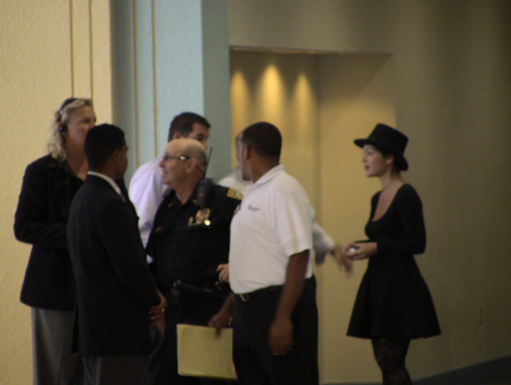 Era un po’ come Davide contro Golia, the “Big System” che si scagliava contro di me. Una macchina gigante che si scaglia contro un micro elemento che gli dà fastidio. Certo, forse in fondo in fondo avevano ragione, forse poteva creare scompiglio (è ciò che volevo, no?) o forse anche poteva essere pericoloso (però ero conscia di stare bene attenta e tiravo il filo in basso) ma esemplare è stato il commento della mia amica Marilyn, che era venuta per vedere la performance e che la sa lunga, in quanto vive a Miami da più di 30 anni e ha diretto un importante albergo: questa fiera fa girare SO MANY MONEY che non possono nemmeno concepire che succeda un minimo incidente o un fuori programma, perché avrebbero dei guai di immagine che farebbero finire questo bengodi … (questo è il succo di ciò che ci ha detto, tradotto con parole mie).