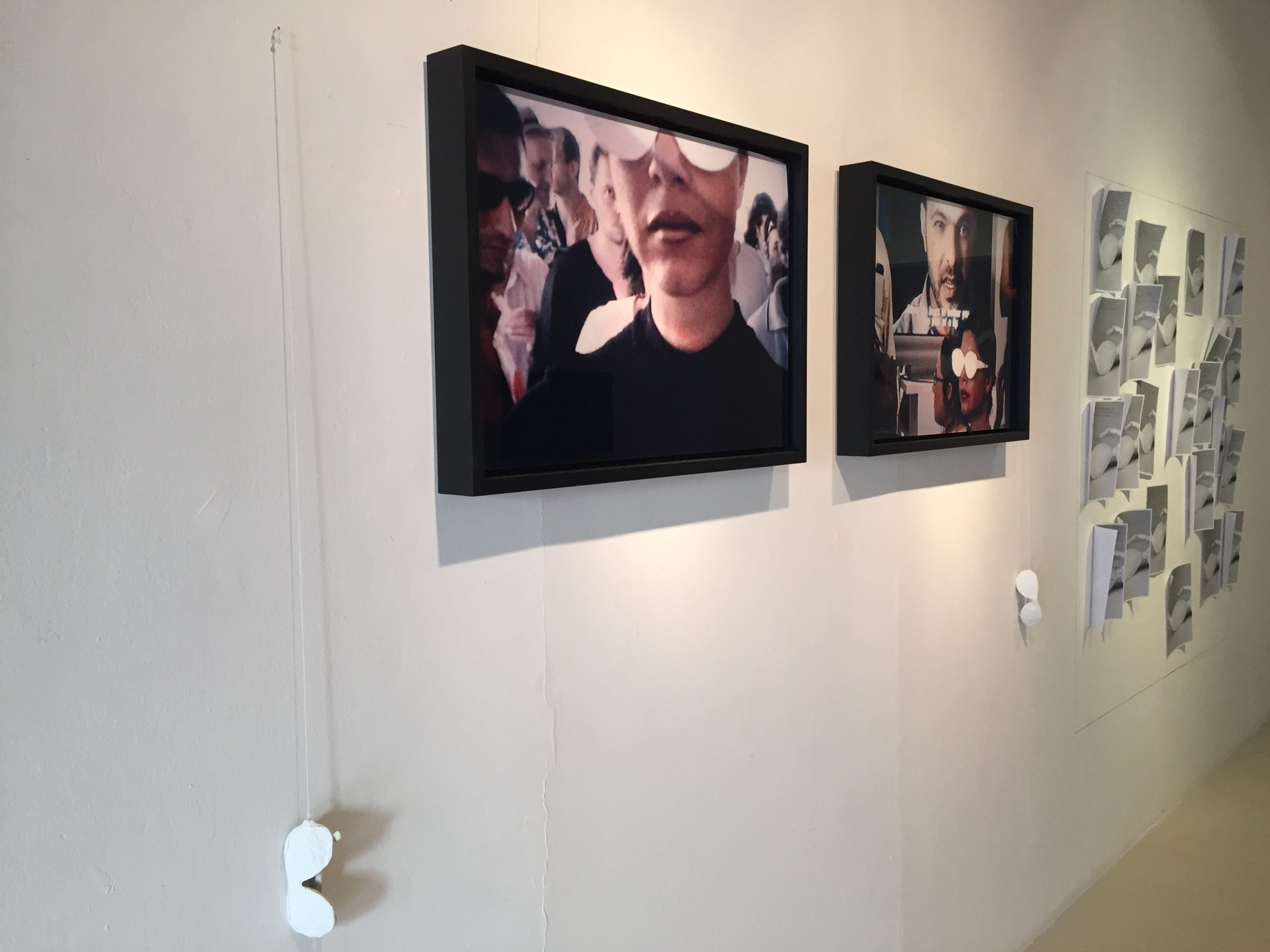 Appare svettante dalla parete di fondo della galleria l’icona rappresentativa di alcuni suoi topic: l’immagine degli occhiali “epici” fittamente stuccati di bianco (si vedano anche le stampe di In Buren at the Armory, 2006-2017 e di Jericho in Bremen, 2011- 2017) che in questa occasione a Cupra Marittima sono diventati strumento e viatico anche di tutti i coinvolti in quest’ultima nuvola performativa! Il bianco e il silenzio in contrasto con il buio della cecità e il frastuono del dolore, sono gli elementi formali e simbolici di un messaggio culturale che parla ai sensi.