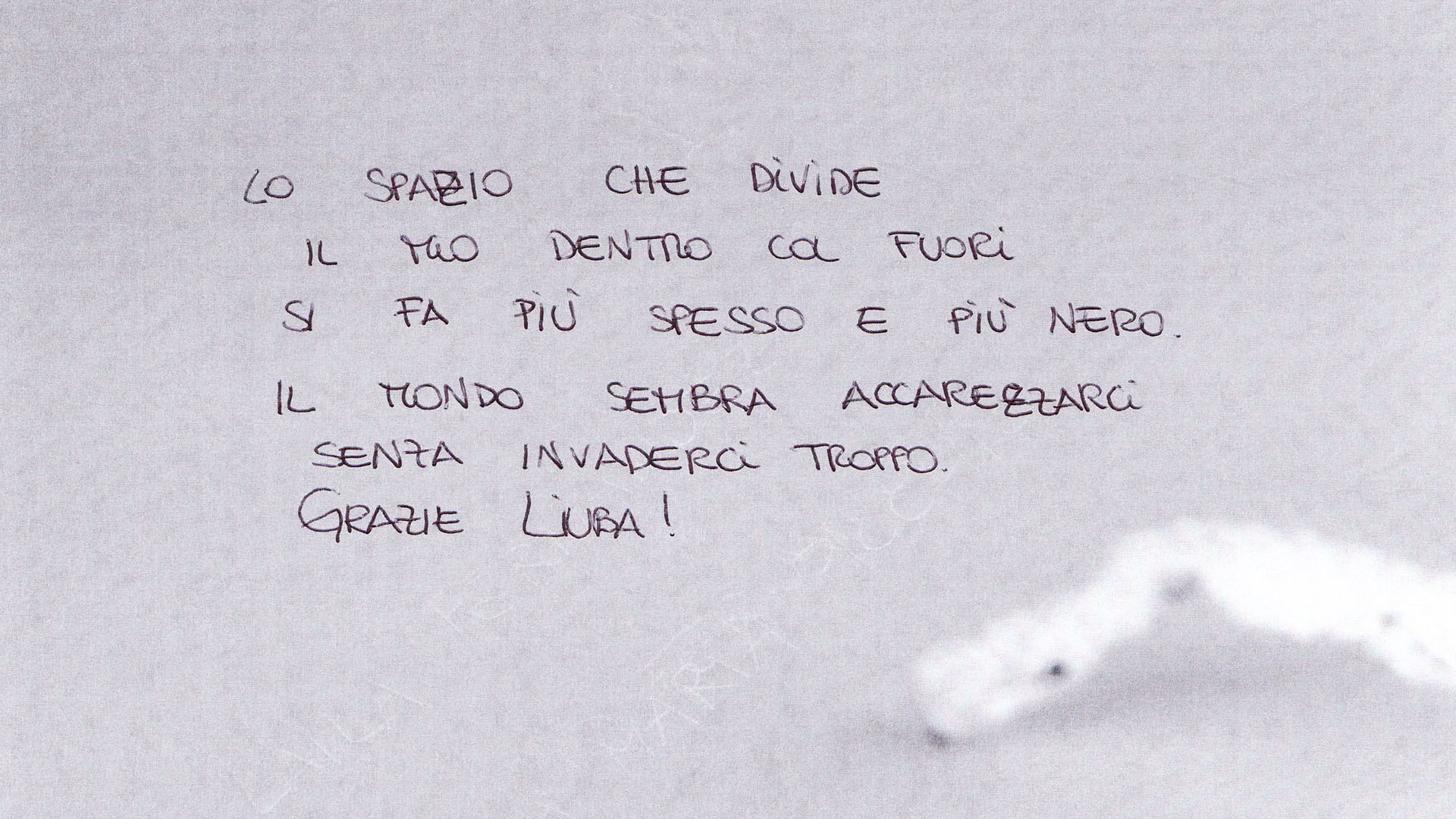 Come cita inoltre il contributo critico di Valentina Falcioni, l’azione di Liuba aiuta a “sciogliere confini tracciati da un analfabetismo empatico”.