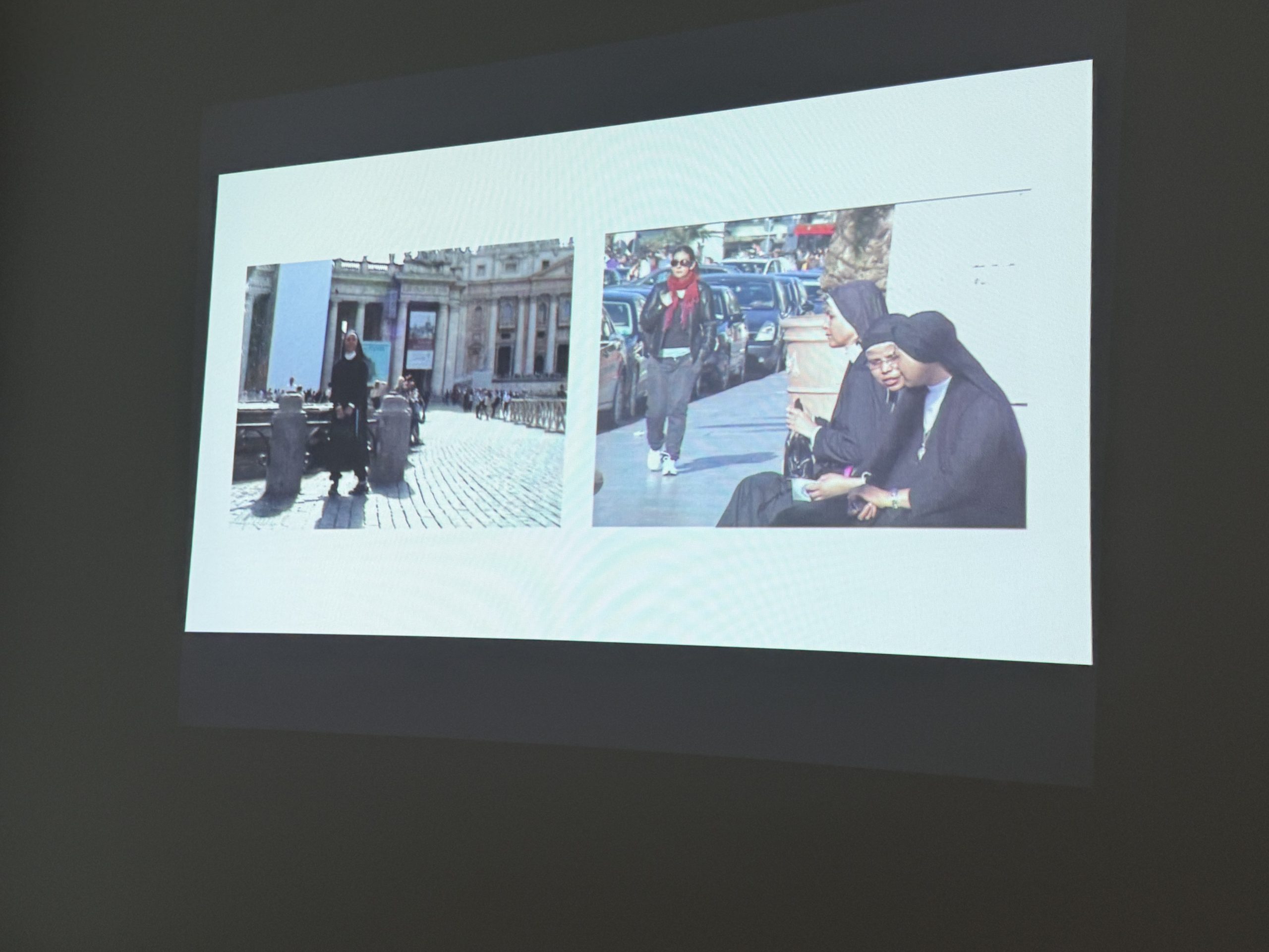 Cosa ci fa una suora alla Biennale? Il ruolo ricoperto nella società e sancito da un abito, è tale da condizionare i giudizi e le aspettative degli altri? Una persona che sceglie uno status religioso, subisce sguardi diversi nel fare ciò che tutti fanno, come visitare una mostra o bere un cocktail? Qual è il valore della trascendenza nella vita di tutti i giorni? Quale sarà la reazione delle persone? Queste sono alcune delle domande che hanno spinto l’artista a fare questo lavoro.