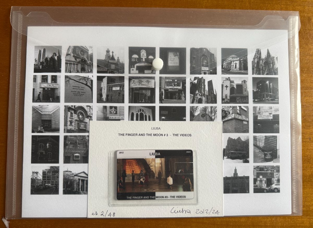 Nella confezione è presente anche la stampa della composizione fotografica che ha originato l’abito usato nella performance, ossia una serie di fotografie a differenti luoghi di culto scattate da LIUBA a New York nel 2012 (cfr. The Finger and the Moon #4), insieme alla presentazione del progetto in italiano e inglese.