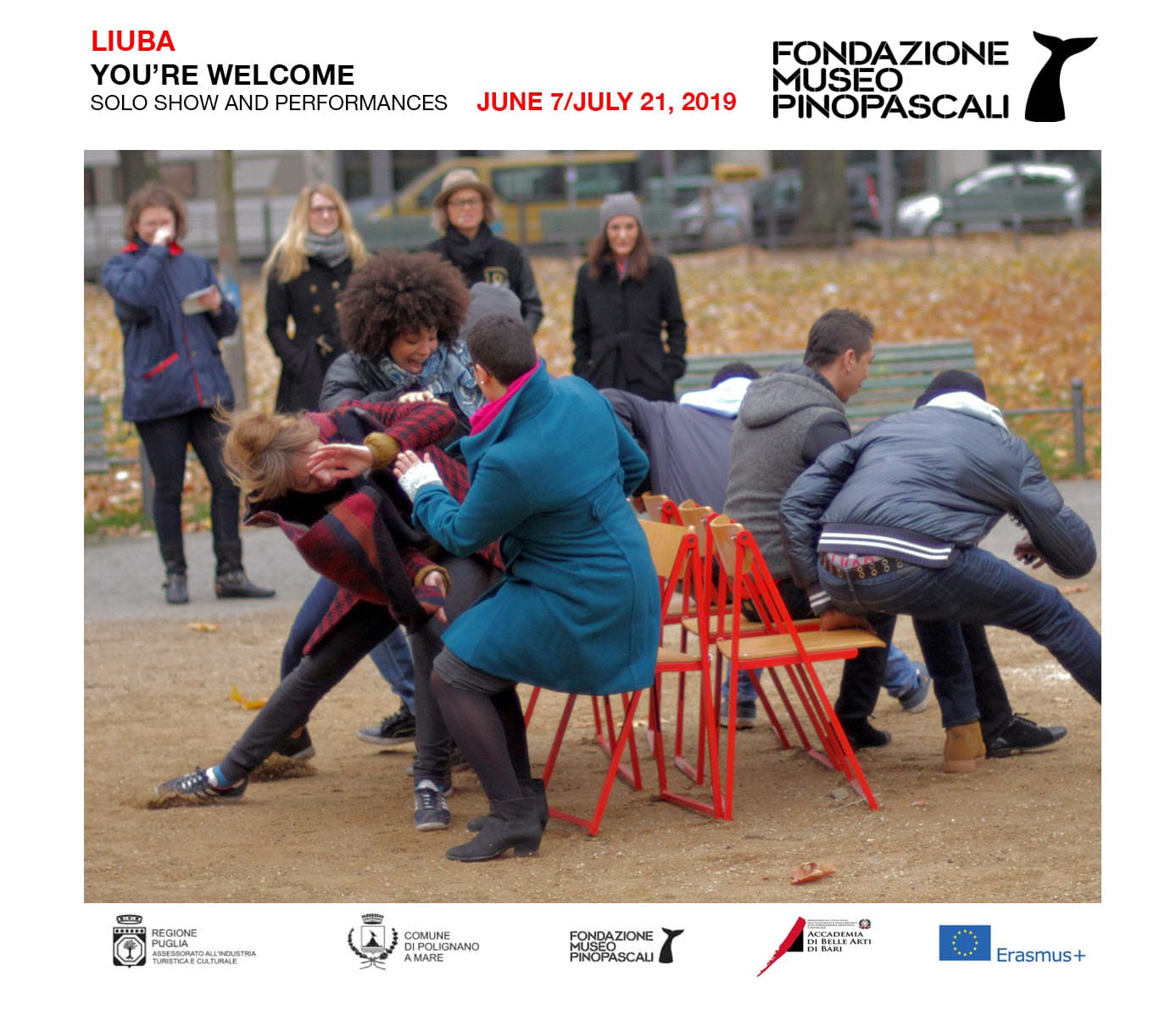 Nel 2019, dopo anni di continua riflessione ed elaborazione artistica di questi temi, LIUBA è invitata a portare il suo “Refugees Project” (Berlino, 2013-2014) alla Fondazione Pino Pascali – Museo di Arte Contemporanea, a Polignano a Mare (BA): nasce, così, You’re Welcome, una mostra personale che comprende due video-installazioni, una serie di opere fotografiche, e due performance partecipative con i rifugiati abitanti nella zona.