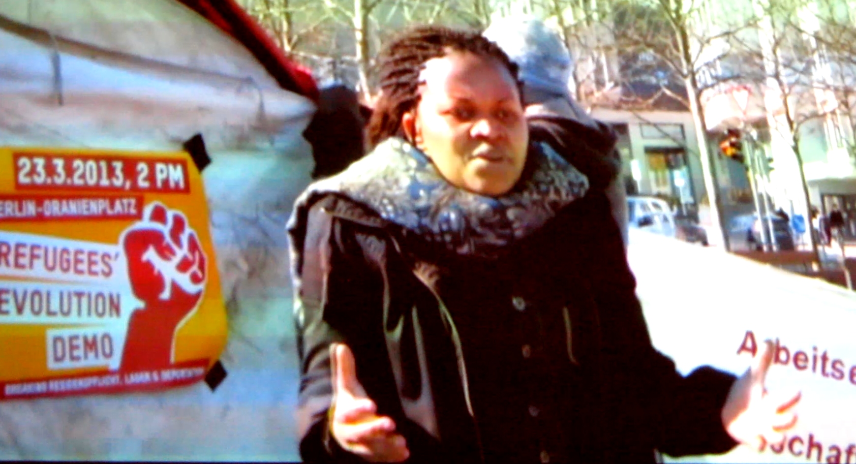 Tra le molte proteste per l’acquisizione dei diritti, in Germania la più visibile fu nel 2012, quando con gli slogan “We are here” e “Kein mensch ist illegal” (Nessuno è illegale), più di 200 rifugiati da differenti parti del mondo, allestirono una tendopoli di protesta in Oranienplatz, una piazza del centrale quartiere Kreuzberg di Berlino, supportati anche dalla solidarietà di molti cittadini e di alcuni politici.