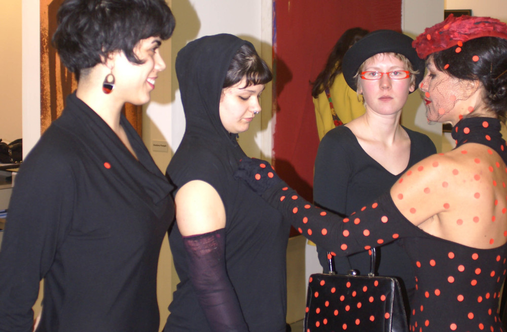• Performance Hat, 2004, handmade silk hat and red dots, (photo: Veronica Roccoli)